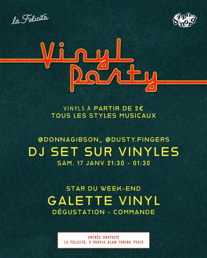 Dans le cadre de La Galette Vinyl de La Felicità , Dizonord est heureux de vous proposer sa vente de vinyles orientée diggers. Installé à côté du train de desserts de La Felicità 5 Parvis Alan Turing, le marché de vinyles se déroulera de 12h à 19h les samedi 17 et dimanche 18 janvier 2026.