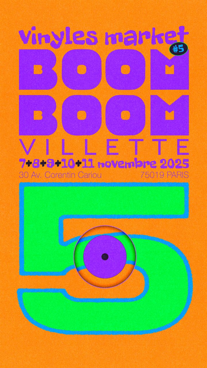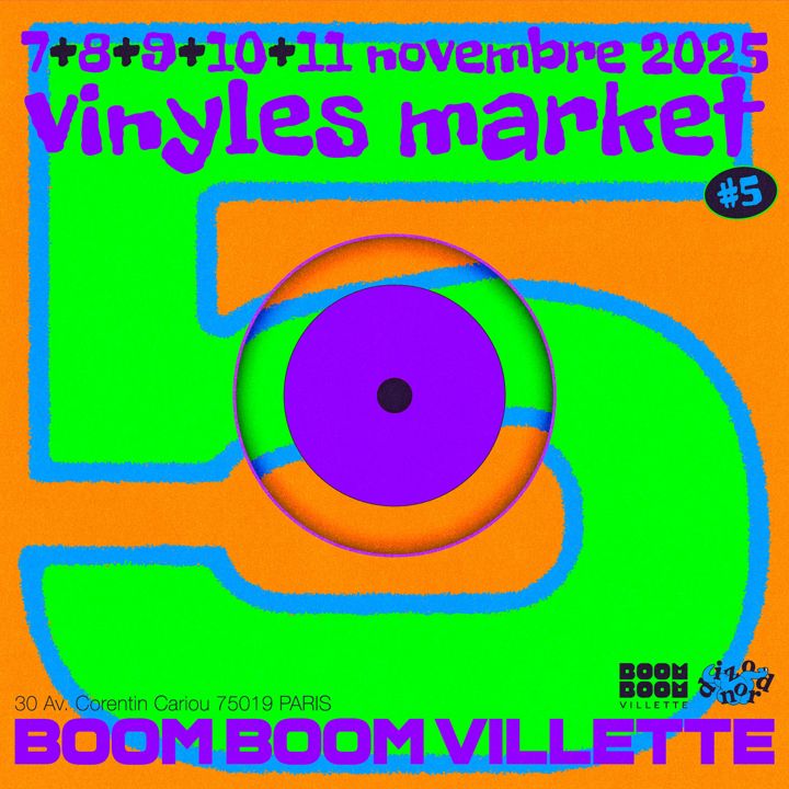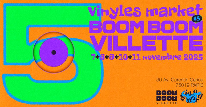5-4-3-2-1 €uro ! 5ème "Vinyles Market à Boom Boom Villette" par Dizonord à l'accueil du magnifique lieu de loisirs, bar et food market jouxtant La Cité des Sciences ! La vente de vinyles se déroulera à l'entrée du bâtiment exceptionnellement sur 5 jours, en même temps que la Grande Vente de Plantes Paris 19, de 11h à 19h du vendredi 7 novembre au mardi 11 novembre 2025 inclus !